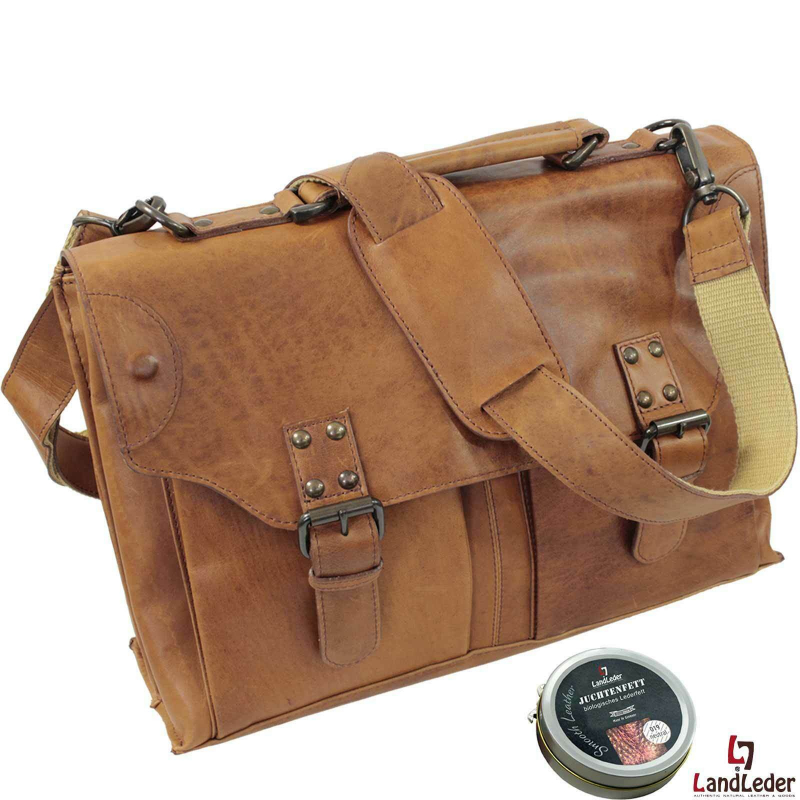 LandLeder Eco-Rodeo Aktenmappe gewachstes Vollrindleder hellbraun